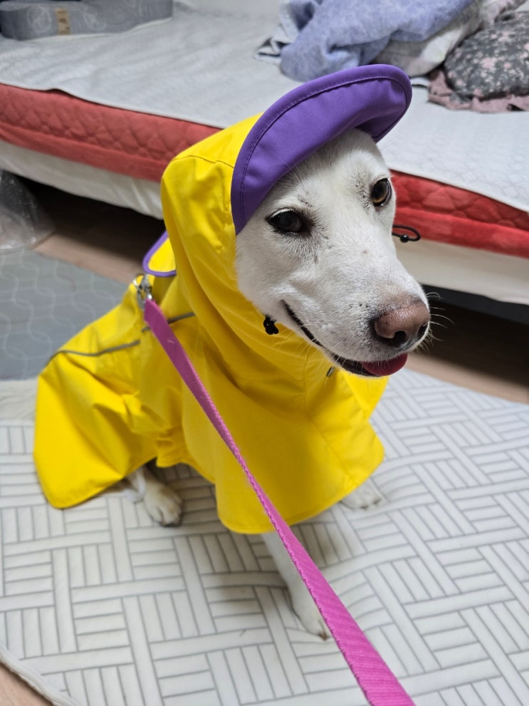 실외배변 강아지 레인코트 | 비오는날 산책하기 | 누누숨 우비 내돈내산후기