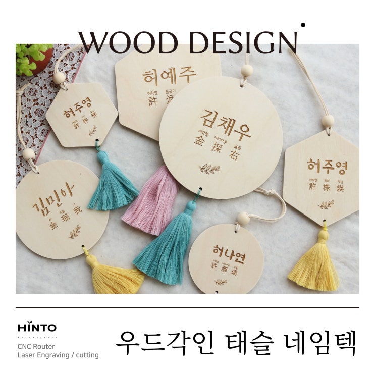 우리 아이 방 꾸미기 힌토 우드각인 태슬 네임텍으로 마무리!