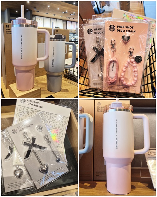 스타벅스 SS 스탠리 켄처 텀블러 핑크/그레이 데코 체인 하트/핑크슈 레터링 데코 스티커 8/5 대용량 사...
