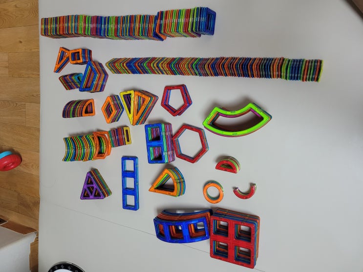 요즘 부쩍 자석블럭 놀이에 빠진 우리 아이를 위한 당근거래...^^ 예전에 문화센터에 다니면서 받았던 16개...