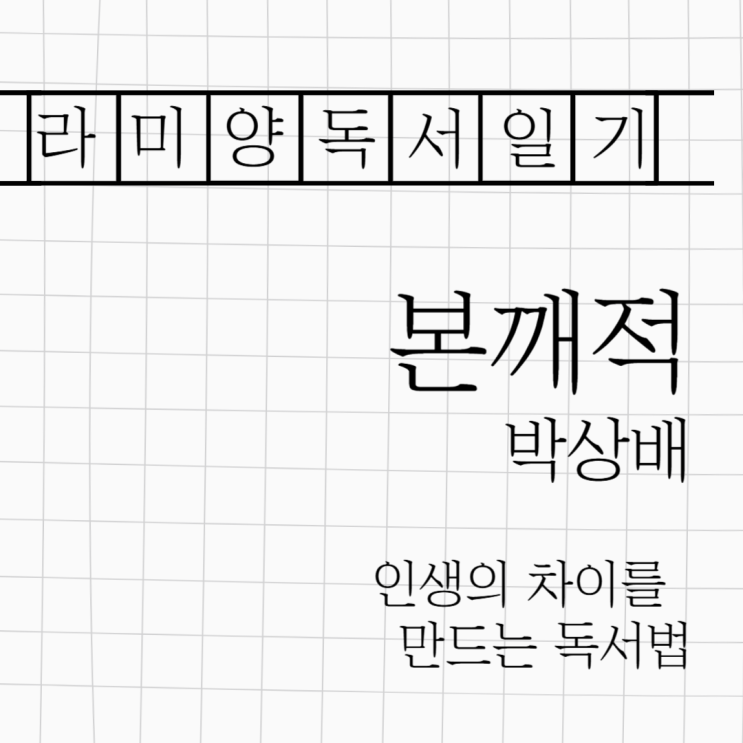 책 제목: 인생의 차이를 만드는 독서법 본깨적 저자: 박상배 읽은 이유: ‘일천권 독서법’에 나온 책으로 ...