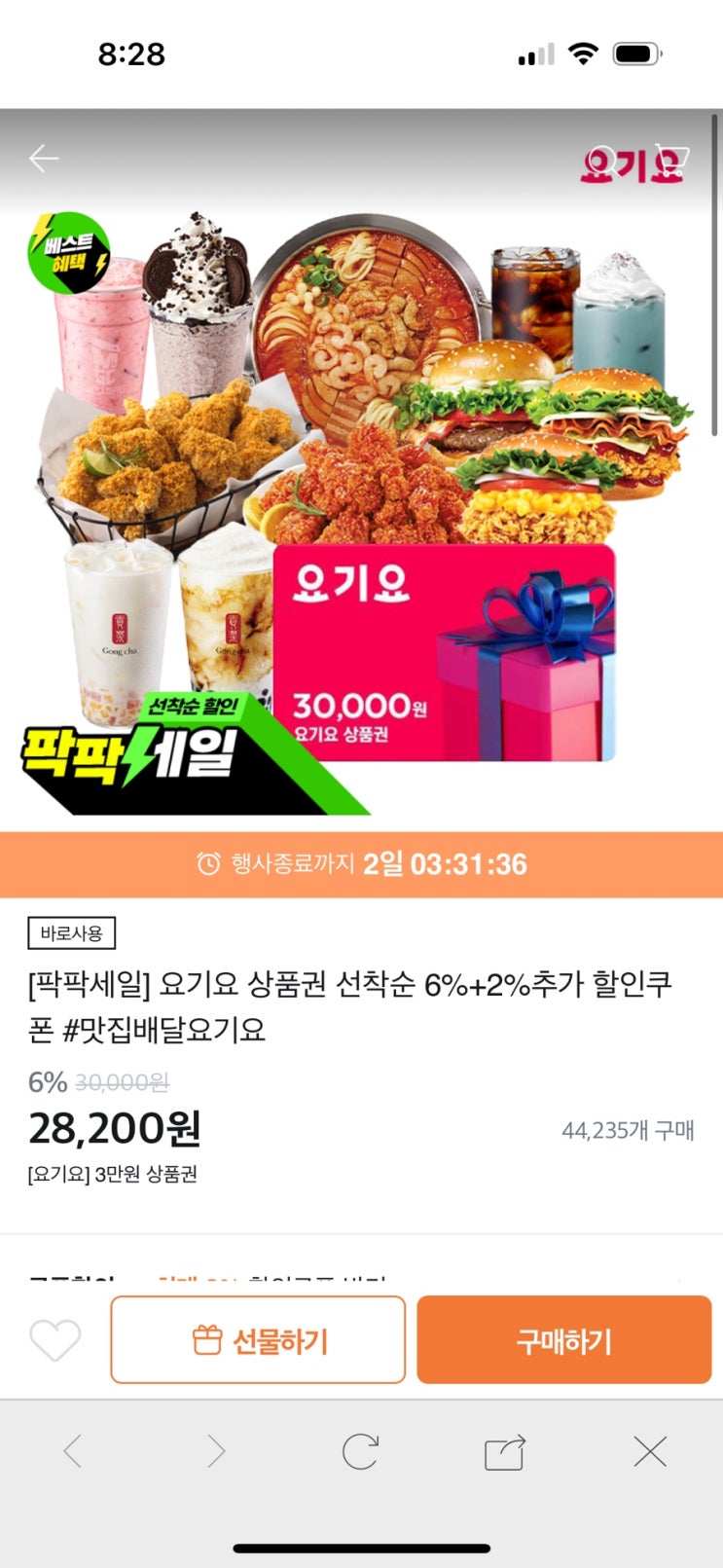 요기요 상품권 8% 할인
