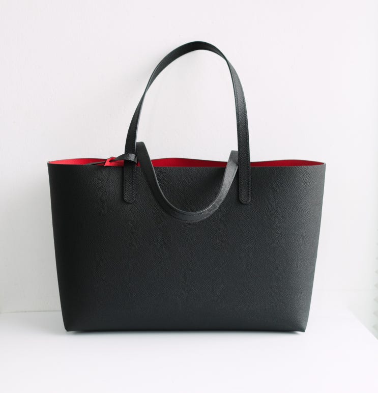 서울 왕십리 가죽공방 담담 수강생분께서 만드신 아주 가벼운 쇼퍼백입니다 겉은 블랙, 안은 아주 강렬한 ...