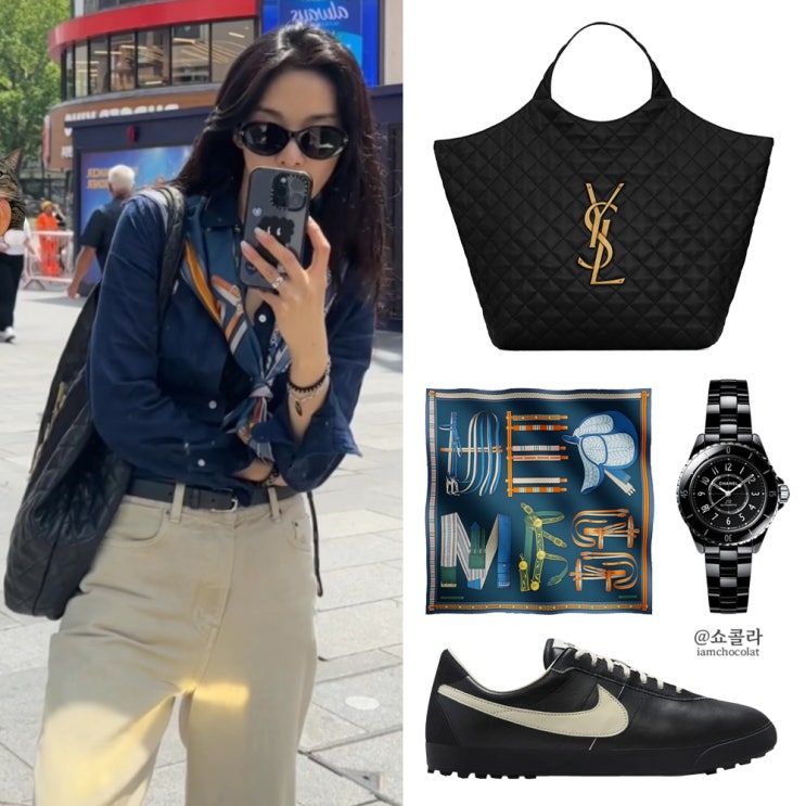 이청아 가방 생로랑 쇼퍼백 & 런던여행 코디 착장템 zip
