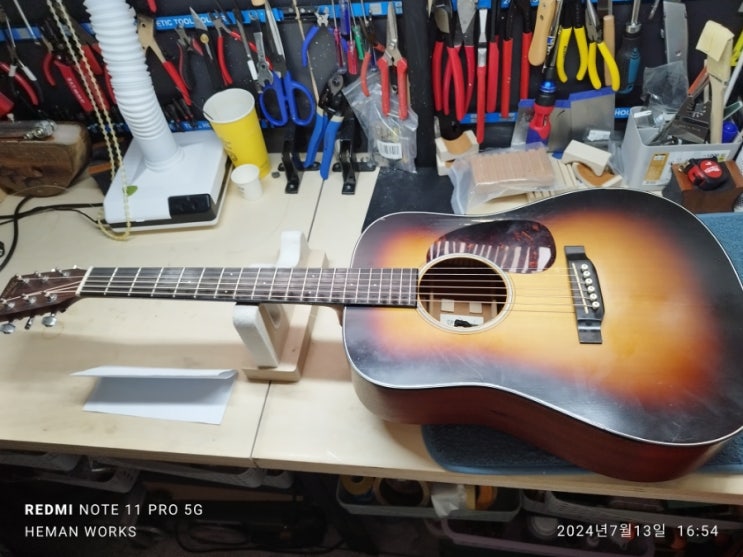 안녕하십니까 헤만웍스입니다 마틴 드레드넛jr 수리입고되어 셋업 작업을 해봅니다 마틴 드레드넛jr의 상태...
