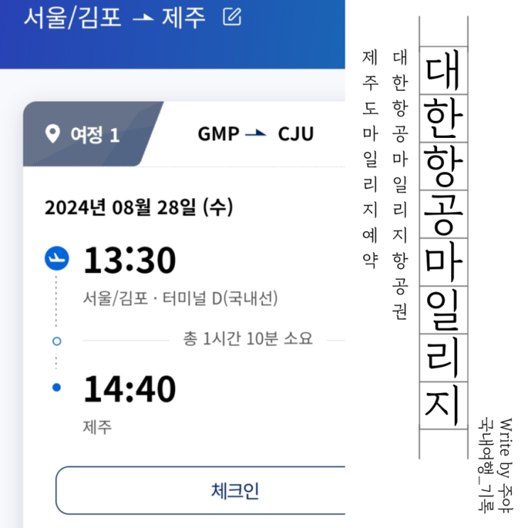대한항공 마일리지 제주도 왕복항공권 예매하기 스카이패스 마일리지 항공권 예약방법 안녕하세요, 주야입...