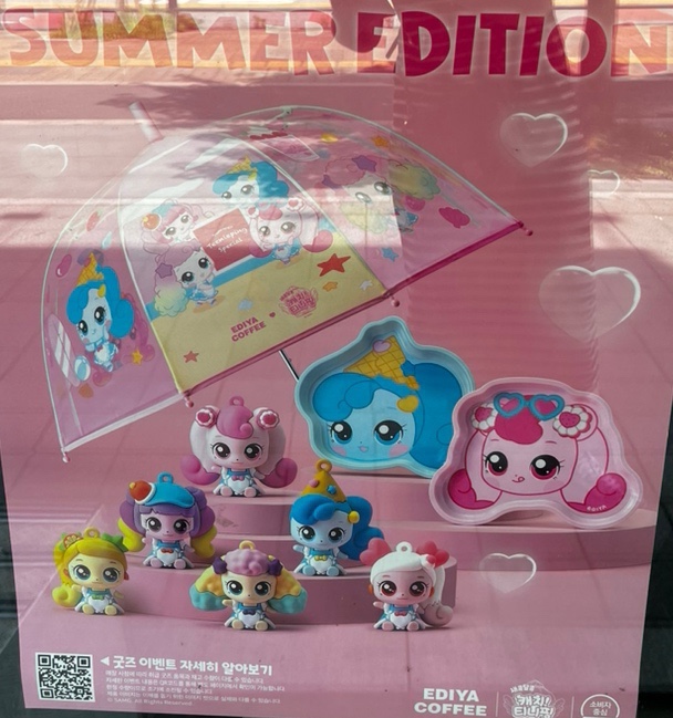 [내돈내산]이디야x새콤달콤티니핑 콜라보 우산과 랜덤 피규어 마그넷 구입후기