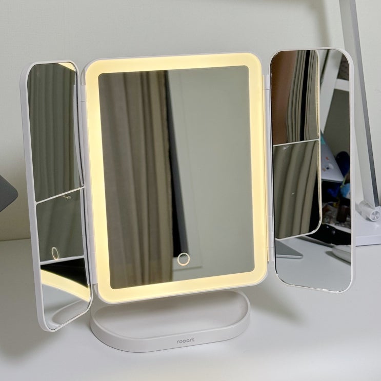 인테리어 소품으로 활용할 수 있는 화장대 필수템, 3단 확대경이 내장된 접이식 탁상거울 루아뜨 LED 조...