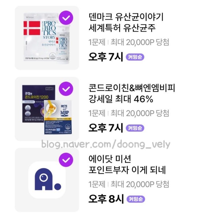 오늘도 오후 12시, 오후 7시, 오후 8시에 퀴즈있음. 오후 12시 보너스오퀴즈 오후 7시 주영엔에스 퀴즈 오...