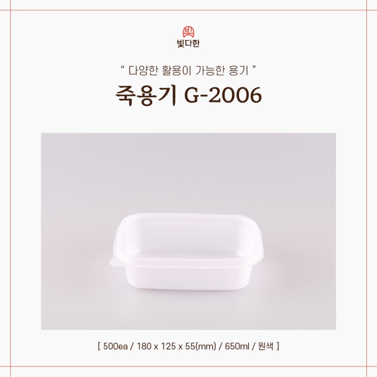 안녕하세요. 온기 가득한 따뜻함을 전하는 빛다한입니다. :) 튼튼한 TY-사각 밀폐 죽용기 (2칸) 입니다. ...