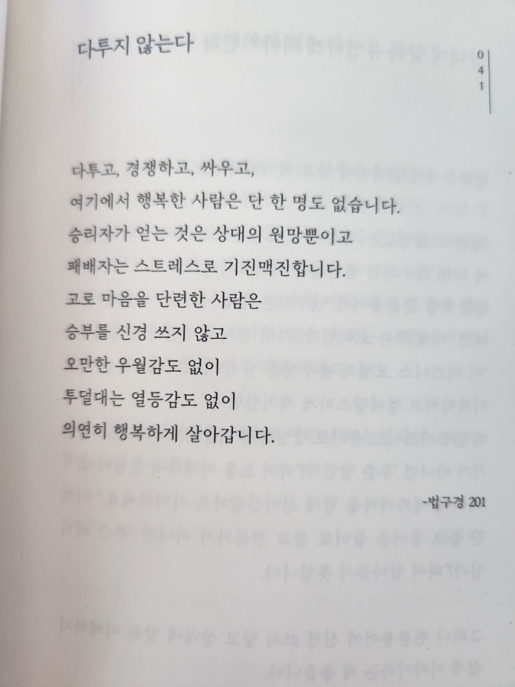 다투지 않는다. 다투고,경쟁하고,싸우고, 여기에서 행복한 사람은 단 한 명도 없습니다. 승리자가 얻는 것...