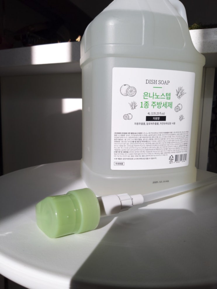 4리터 1+1이던 제품. 자연유래성분사용 한다는 글귀에 구매해본 제품입니다. #은나노스텝1종주방세제 4리터...