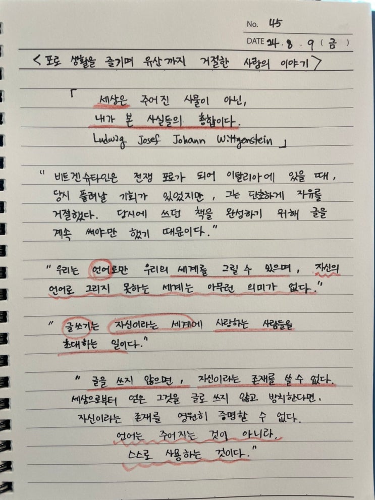 김종원의 세계철학전집 비트겐슈타인 for 언어 #필사113일차 마음속에 간직한 용기가 처음에는 씨앗처럼 작...