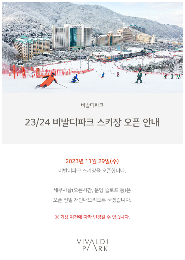 23/24 시즌 비발디파크 개장일, 시즌권 발급방법, 스키강습 안내