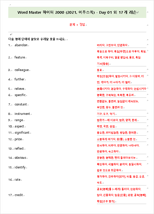 [워드마스터 하이퍼 2000] Day 27~29 암기 자료 공유
