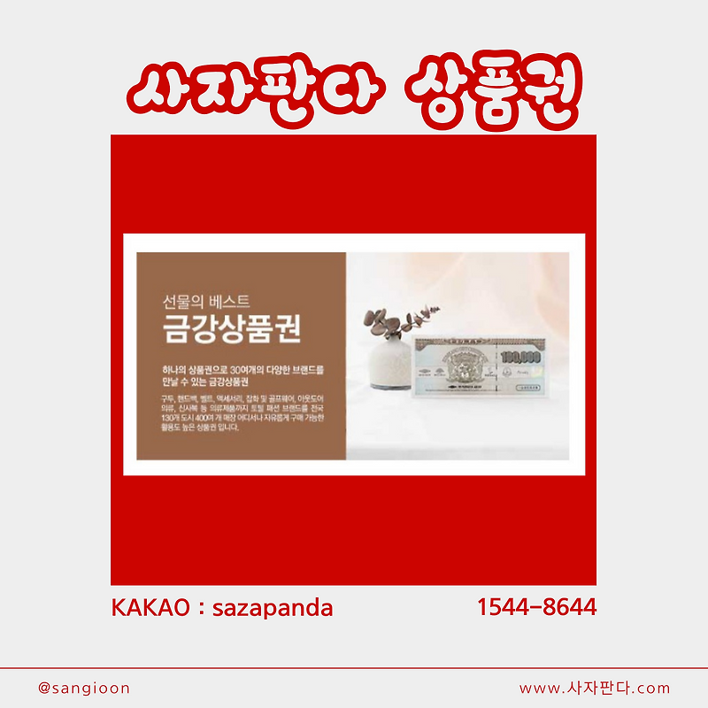 안녕하세요. 사자판다 상품권 입니다 :)오늘은 선물용으로 많이 찾으시는 금강제화 상품권은 구두 / 가방 / 지갑 등다양한 금강제화 브랜드에서 사용이 가능한 상품권인데요.선물 받았을 때 이