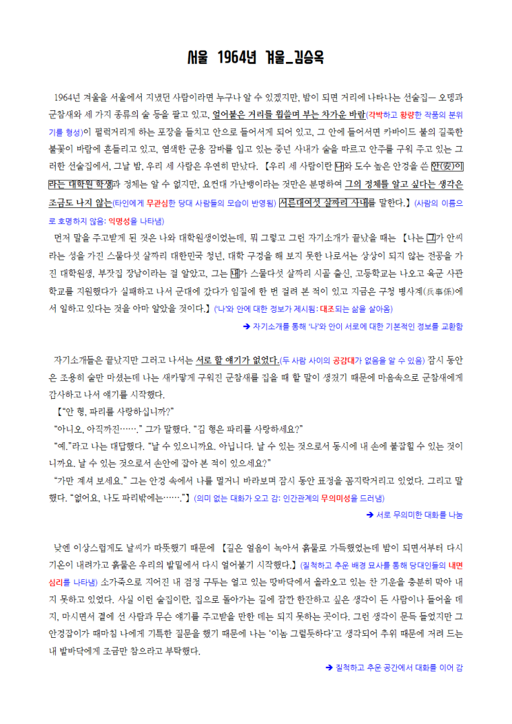 서울 1964년 겨울(김승옥) 해설 정리 분석 1964년 겨울을 서울에서 지냈던 사람이라면 누구나 알 수 있겠지...