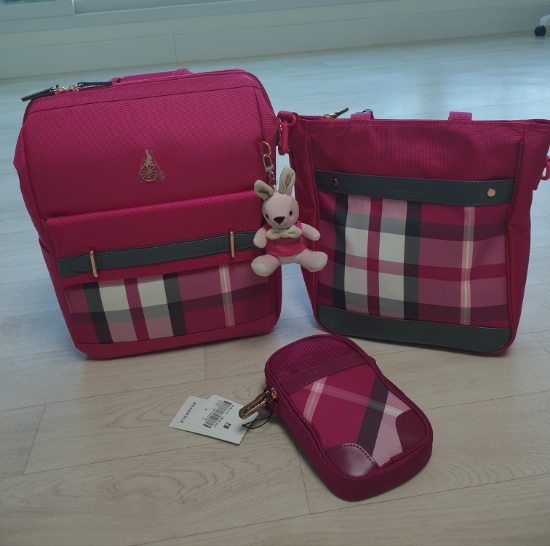 예쁨주의 빈폴키즈 체크 펠리 핑크3종세트 여자아이 초등학생 책가방
