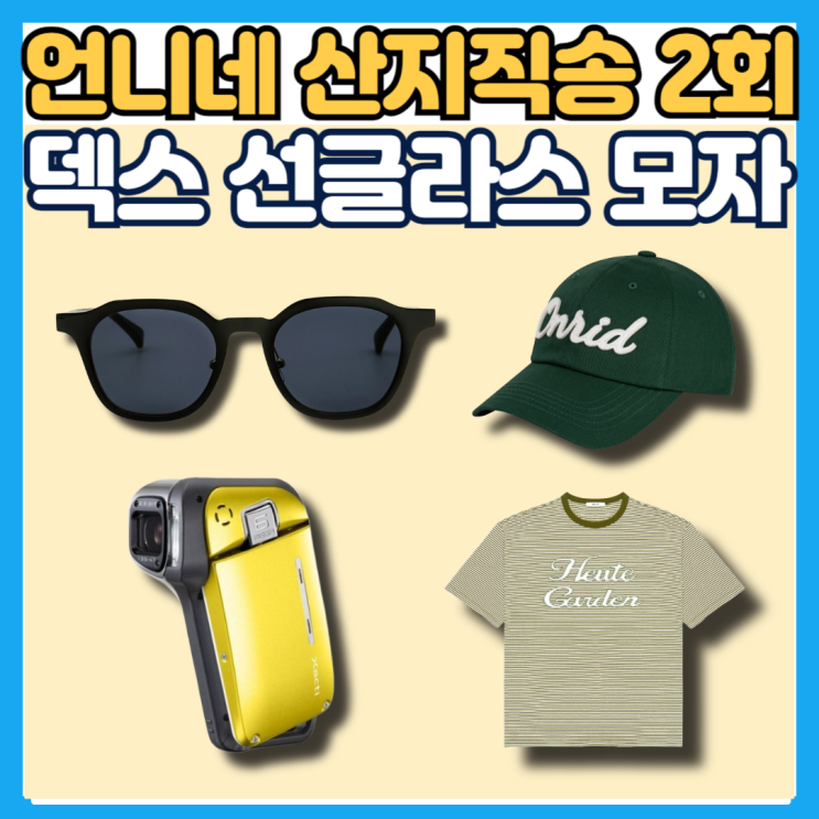 언니네 산지직송 안은진 캠코더 카메라 덱스 선글라스 모자 볼캡 티셔츠 옷 의상 패션