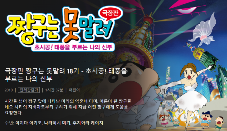 넷플릭스에서 시청 가능한 짱구는 못말려 극장판 18번째 이야기 ???? 5살 신짱구 ~ 어른 신짱...