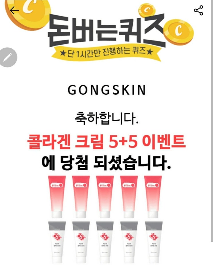 공스킨캐시 콜라겐이벤트 축하합니다 8월10일