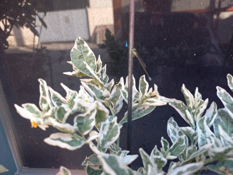 무늬 옥천앵두(예루살렘 체리) 꽃은 열심히 피고 지는데 아직 열매가 보이지 않네요. 어렸을 때 무늬가 없...