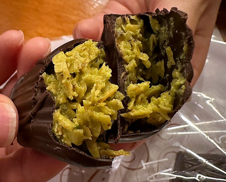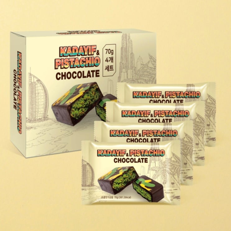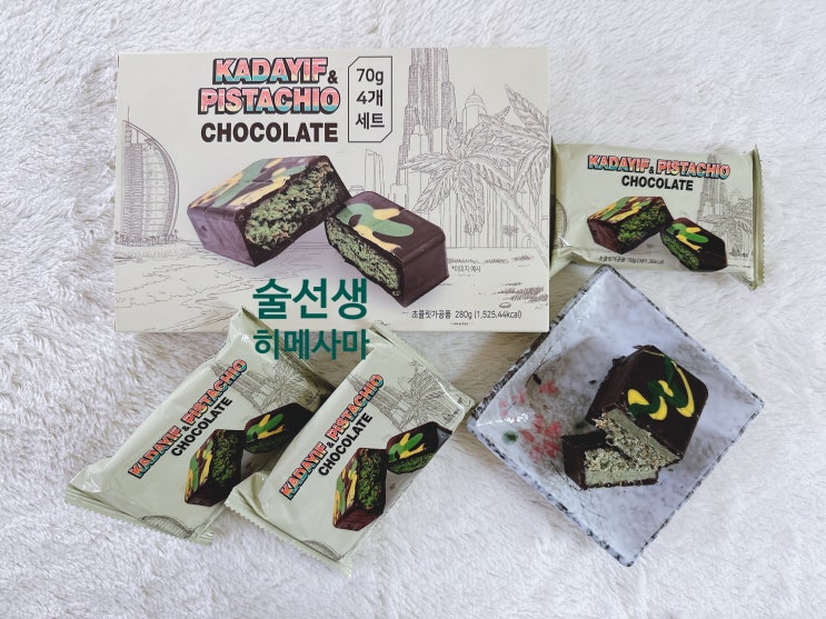 한달전에 예약한 GS편의점 카다이프 초콜릿 1박스 4개입 27200원 주고샀다 돈아까워서 친구랑 두개씩 반...