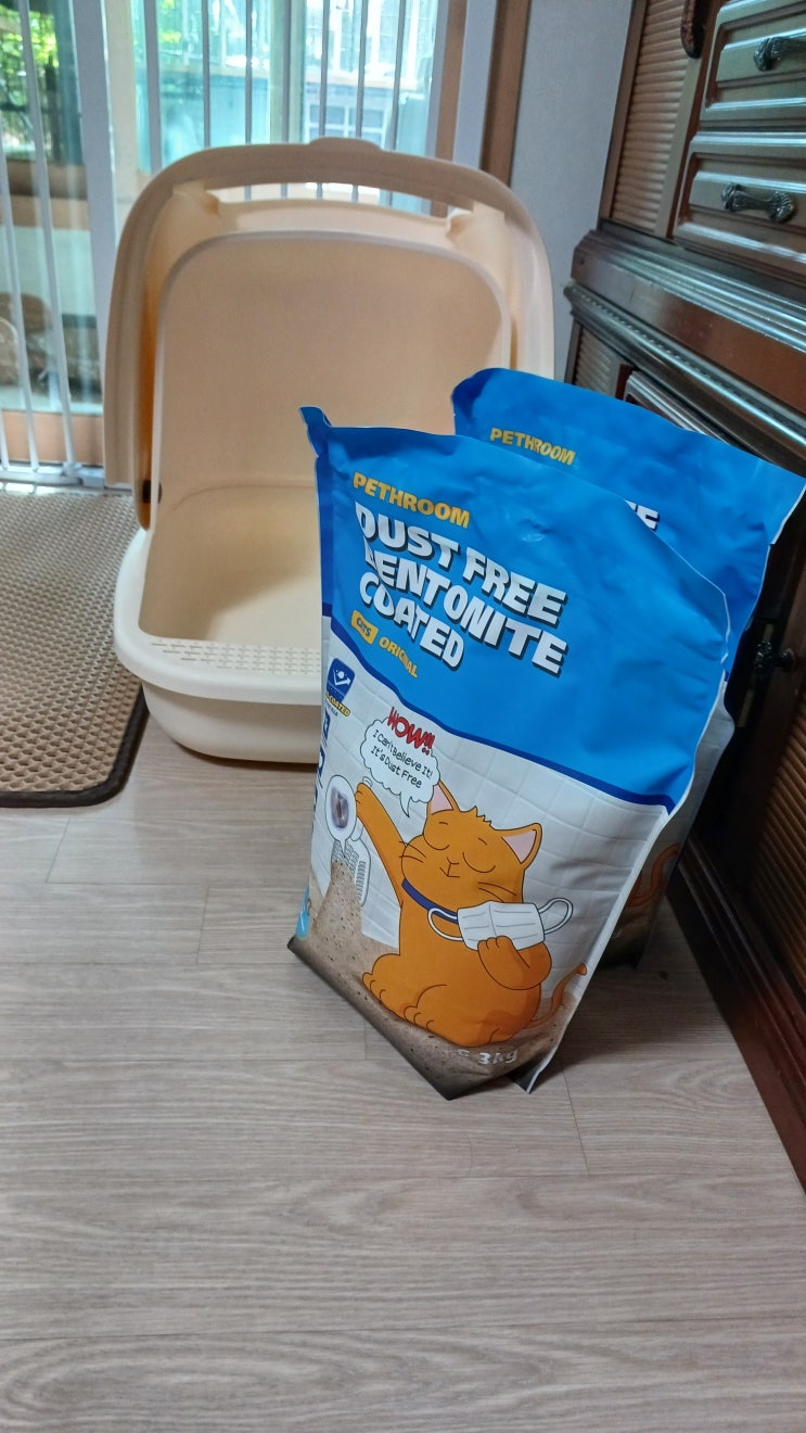 먼지가 없는 페스룸 벤토나이트 고양이 모래! 나의 고양이모래 선택 기준 중 1순위는, 먼지 안나는 고양이...