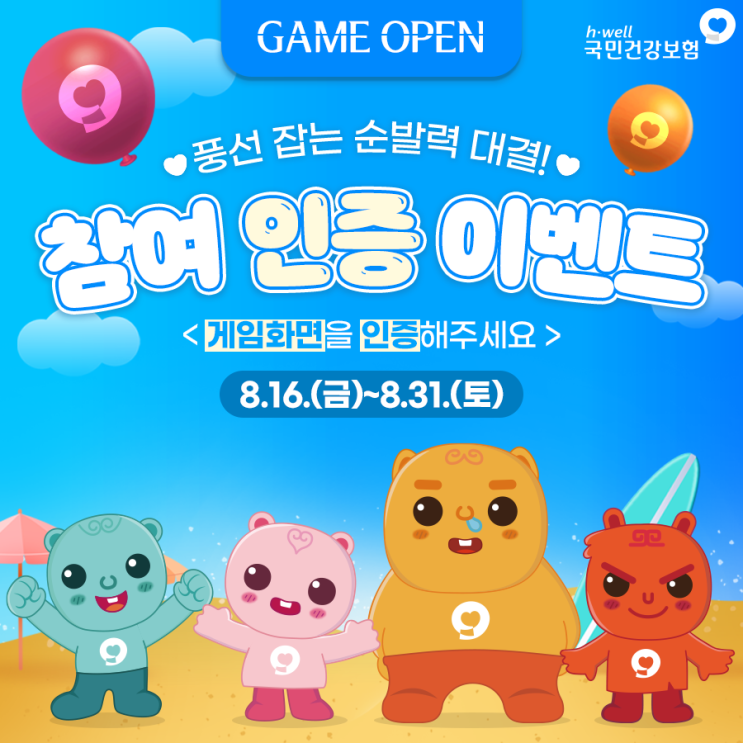 누가누가 빠를까! 순발력 대결을 위해 국민건강보험공단이 준비한 '풍선 잡는 순발력 대결 게임'...