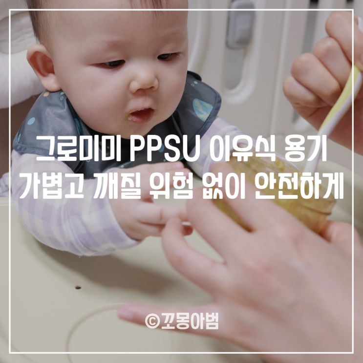 그로미미 이유식 용기 PPSU 소재로 가볍고 깨질 위험 없이 더 안전하게