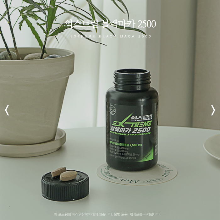 건강을 생각하는 사람이라면 꼭 챙긴다는 블랙마카아르기닌! 두 가지 성분이 함유된 익스트림 2500으로 선...