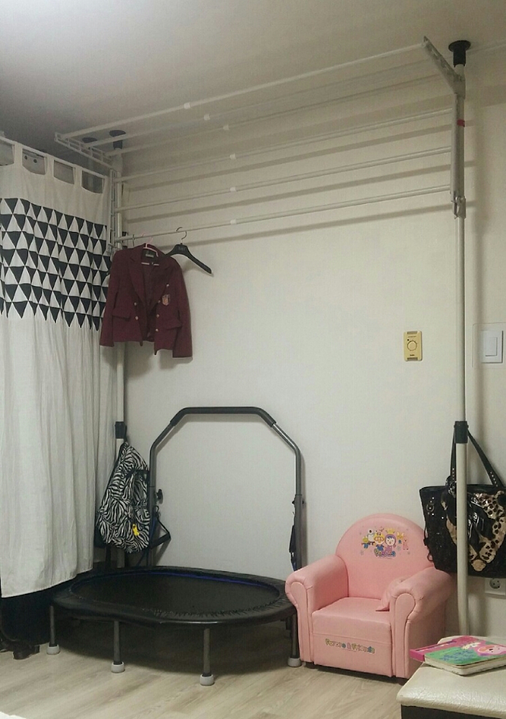공간활용. 베란다용 길이조절 압축 빨래건조대를 실내용으로~
