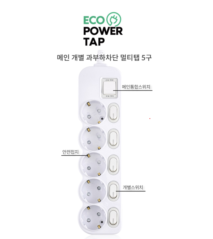 국산 개별스위치 접지 절전 멀티탭 5구, 콘센트 안전하고 편하게 사용하세요