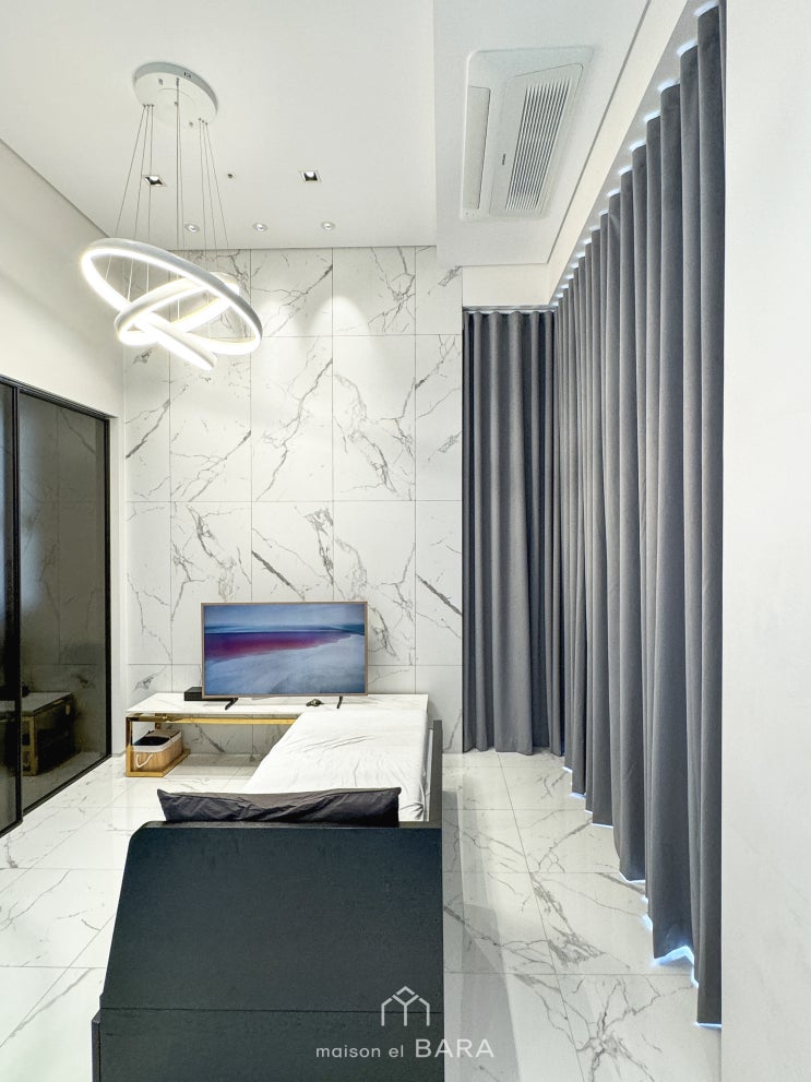 안녕하세요 메종엘바라입니다. 오늘은 청담동에 위치한 #더리버스청담 복층 오피스텔 거실과 다이닝에 암막...