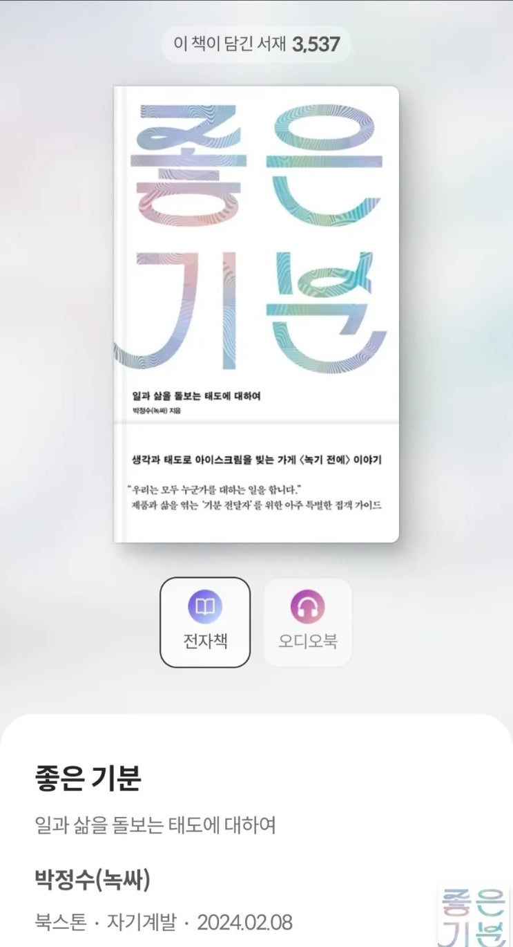#좋은기분 #녹기전에 아이스크림 가게 사장님의 일을 대하는 태도와 가치관이 가득 담겨있는 책. '접...