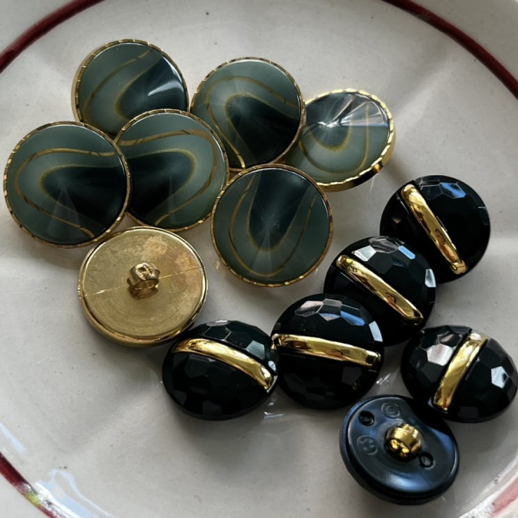 표면이 볼륨감있는 프랑스 빈티지 그린컬러감 메탈단추 2가지입니다 원산지: 프랑스 지름: 1.8cm -- 6 개 ...
