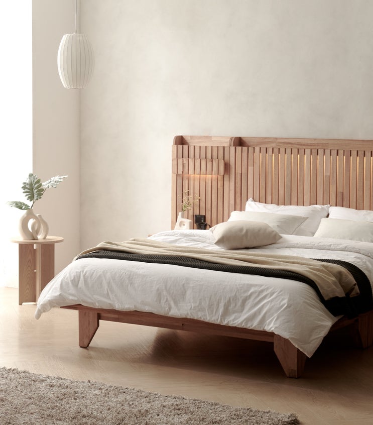 Ma Maison Hotel Fabric Bed 고무나무 원목의 견고한 내구성과 아름다운 나뭇결은 물론 손쉽게 관리하...