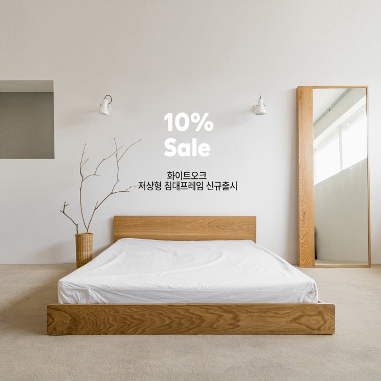 아늑한 안방 분위기를 내추럴 원목컬러의 화이트오크 저상형침대프레임 입니다, 북미산 오크에 100% 핸드메이드로 맞춤제작이 가능한 저상형침대프레임, 낮은침대, 낮은침대프레임