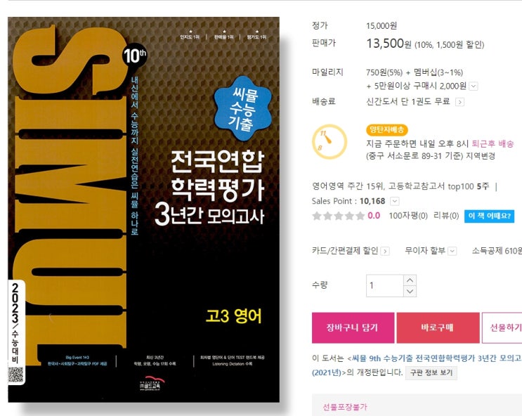 2022년 전국모의고사 일정! 씨뮬 10th 고1 영어 전국연합학력평가 3년간 수능 기출 모의고사로 대비 (고1....