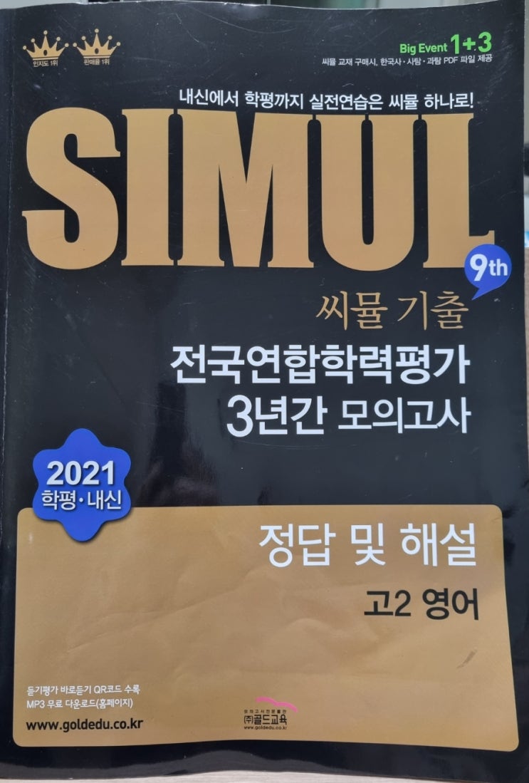 씨뮬 기출 전국연합학력평가 3년간 모의고사 고2영어 마무리인증샷