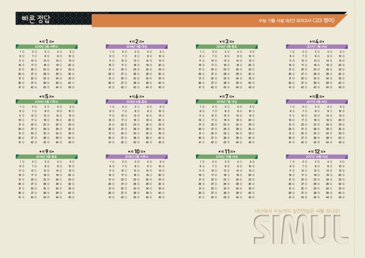 씨뮬10th 고3사설 3년간 영어 정답