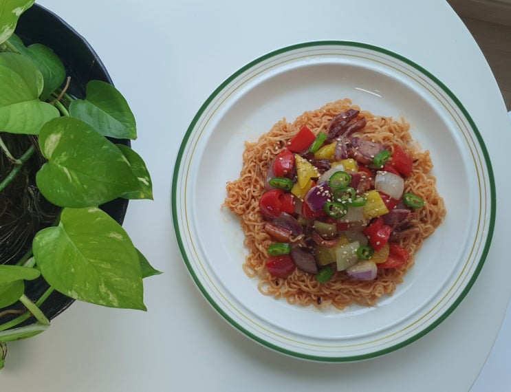 [맛뷰]오리훈제 비빔면- 오리훈제와 팔도비빔면 꿀조합 간편 레시피
