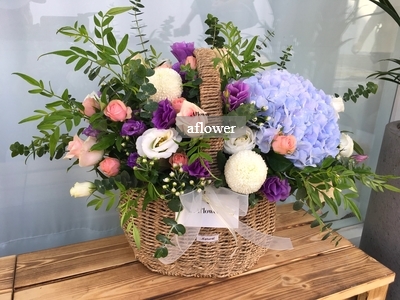 #가을꽃바구니 #수국꽃바구니 #홍제역꽃집 #서대문구꽃집 #연희동꽃집 #리시안셔스 #출산선물 #출산꽃바구...