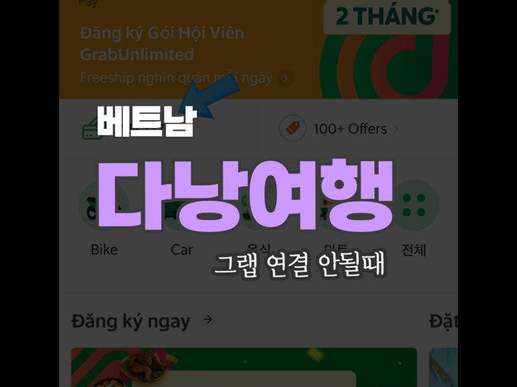 [ 베트남 다낭 가족여행 ] 그랩 신한쏠 연결ㅡ 위치정보 변경할 것, 2명 연결 가능