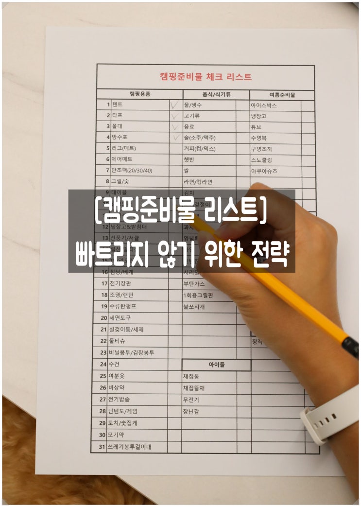 캠핑준비물 리스트 만들기 용품을 트리지 않기 위한 전략 안녕하세요! 요즘 캠핑에 푹~ 빠져 사는 울산아저...