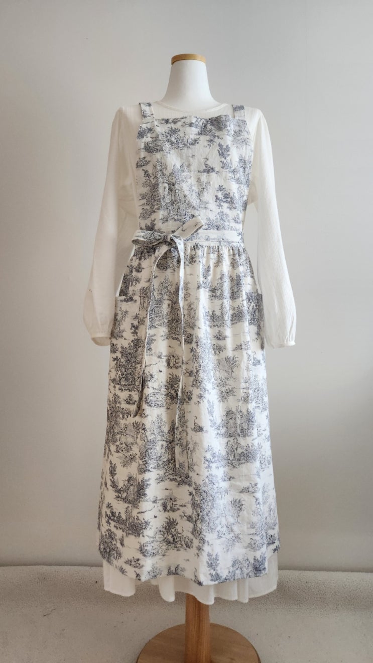 뜨왈 린넨 명화 앞치마 정리해요(그레이1,블루1)