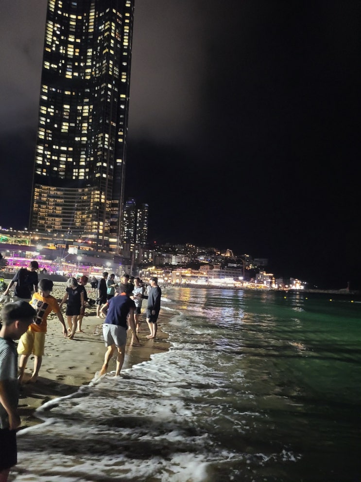 늦은 밤 해운대 해수욕장 파도밟기
