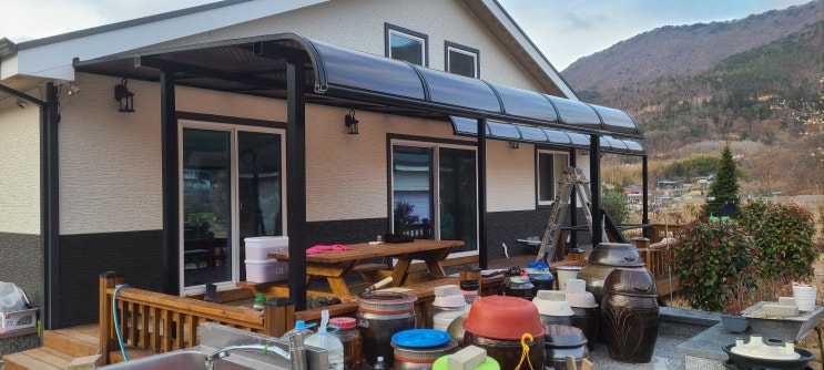경주렉산 산내 전원주택 비가림막 넥산 시공후기입니다 [소비자만족도1위] 렉산ㆍ폴리카보네이트 제작.시공...