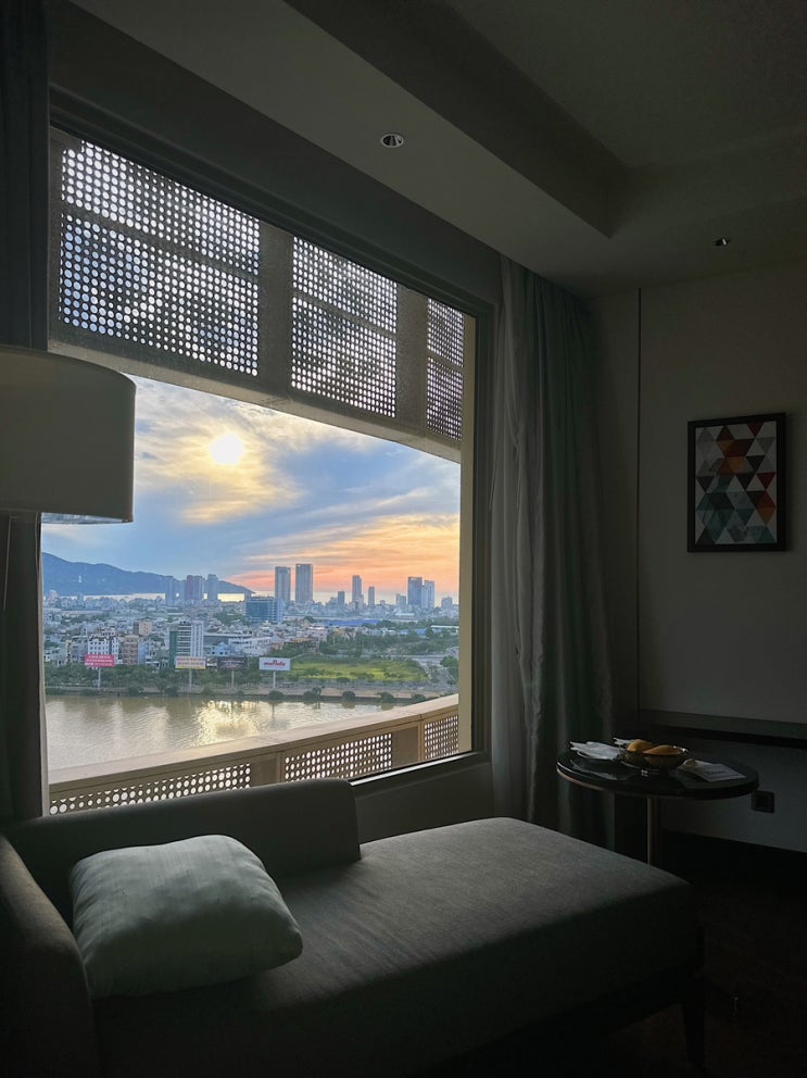 다낭여행 4일차 다낭에서 마지막 밤, 방이 2개라 남편이랑 각자 애 하나씩 끼고 잤다. 다낭 힐튼은 잠만 자...