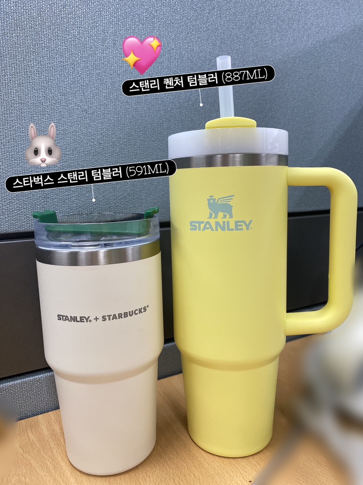 스탠리 텀블러 887ml 퀜처 포멜로 내돈내산 후기, 스타벅스 스탠리 591ml 비교, 빨대세척솔추천